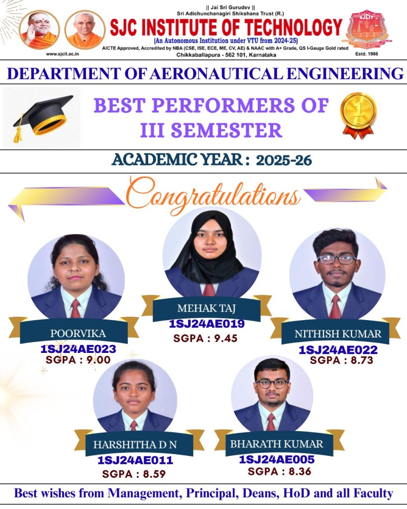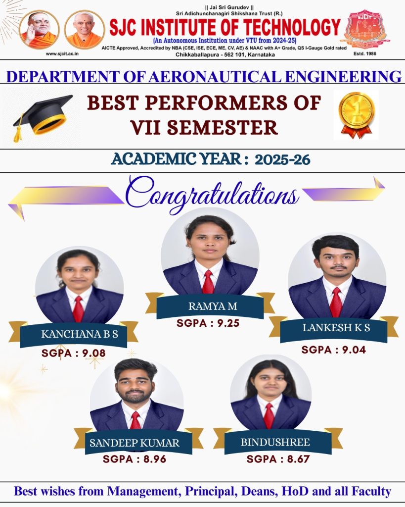 The prestigious department is focusing to fill the gap between academic and industrial needs by organizing guest lectures, seminars and workshops on current technology by inviting eminent persons from premier aeronautical industries and institutes. The specializations include areas like structural design, navigational guidance and control systems, instrumentation and communication or it can be in a particular product such as military aircraft, passenger planes, helicopters, satellites, rockets, etc. Our graduates work in areas like research, design, development and maintenance as well as in the managerial and teaching positions in academic institutes.